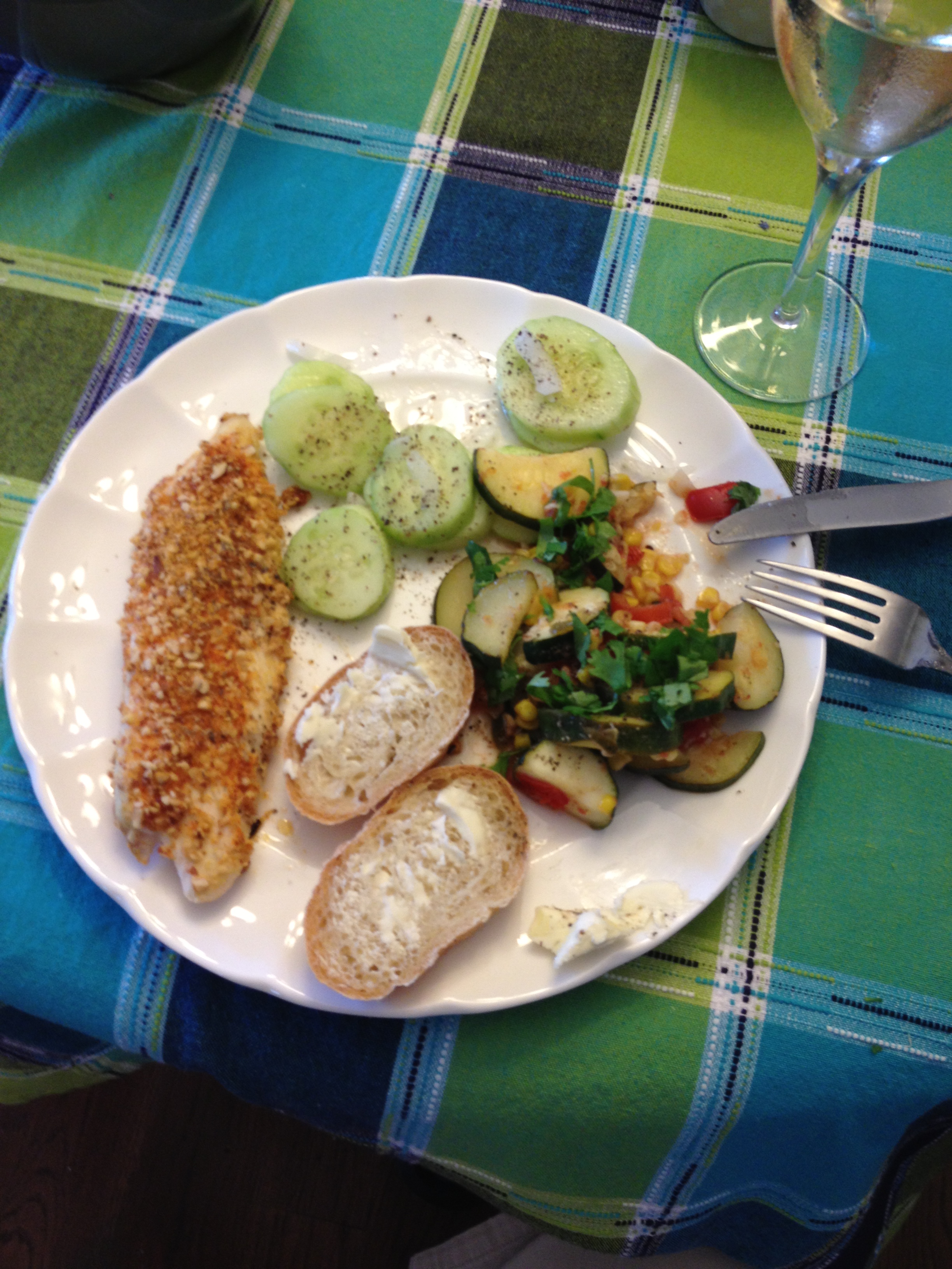 Baked Haddock, Zucchini-Corn and Fresh Cucumber Salad