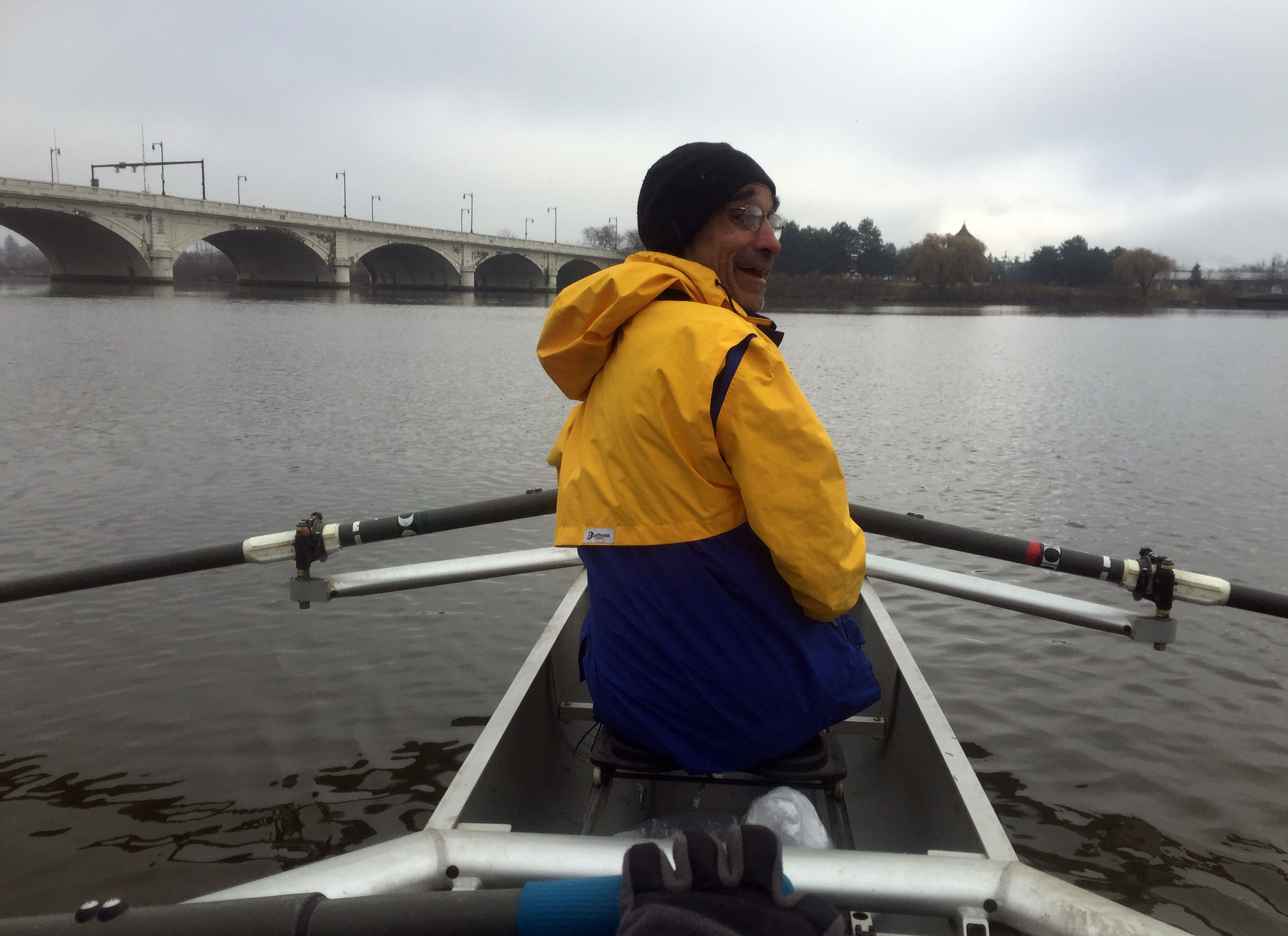 My rowing partner, Mike Moriarty, and I for our first row this December on the Maumee River in the Hudson (boat).