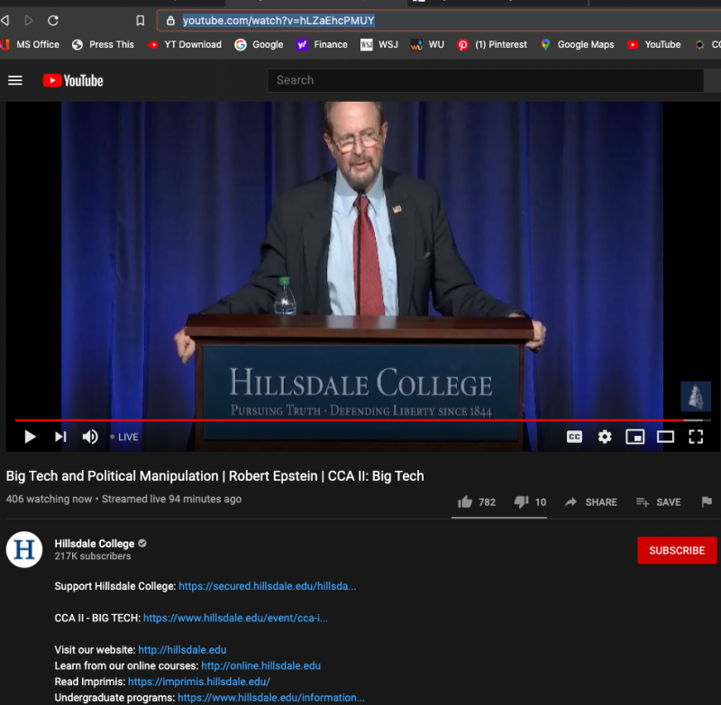 Big Tech and Political Manipulation | Robert Epstein | CCA II: Big Tech – YouTube