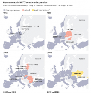 After the chaotic 1990s, the security-service veterans around Mr. Putin who took over Russia’s government complained bitterly about what they saw as the West’s encroachment on Moscow’s traditional sphere of influence in Central and Eastern Europe. An array of newly democratic countries that had been Moscow’s satellites or former Soviet republics joined NATO and the EU, seeing membership of both institutions as the best guarantee of their sovereignty against a revival of Russian imperial ambitions.
