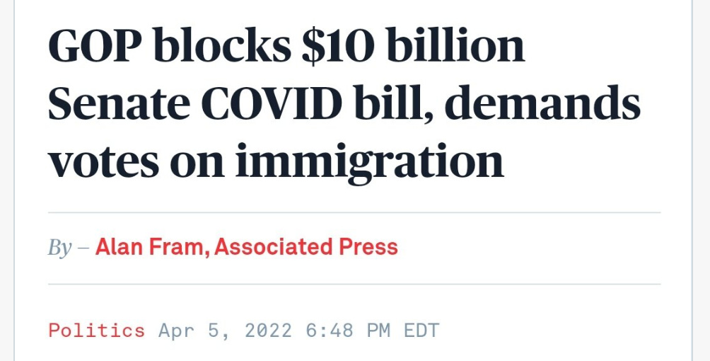 Politico is upset that the jabs might dry up, and so it’s HOPING FOR a covid comeback to force congress to cough up the dough. I am not making that up. The article suggests longingly, IN WRITING, that “with little ability left to force Senate Republicans’ hand, there’s growing fear that perhaps the only way to keep the Covid response alive will be for Covid itself to swamp the nation in infections once again.”