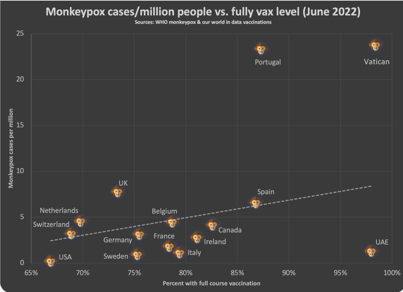 🔥 MonkeyPox Update! The latest figures show two countries with so many proportional Monkeypox cases they are clear outliers: Portugal, in second place, and Vatican City, in first.