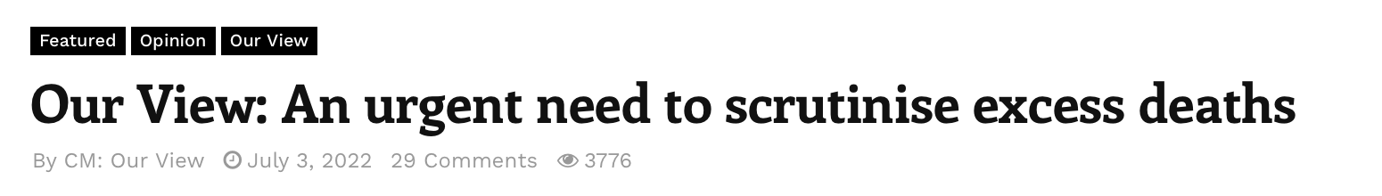 And it seems to be getting worse, not better. The most recent periods are also the deadliest: “There was a marked change in January and February 2022, with 3,105 more deaths than expected in those two months alone.”