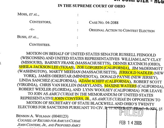 The Democrats joined John Conyers brief, making these arguments—and the same arguments they now vilify and seek to disbar many of us for making: