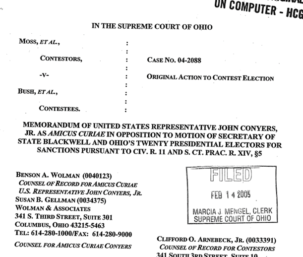 Guess who filed a brief in support of the lawyers who filed this election fraud petition? Who argued vehemently (and correctly) that those lawyers who challenged the 2004 election should not be sanctioned?