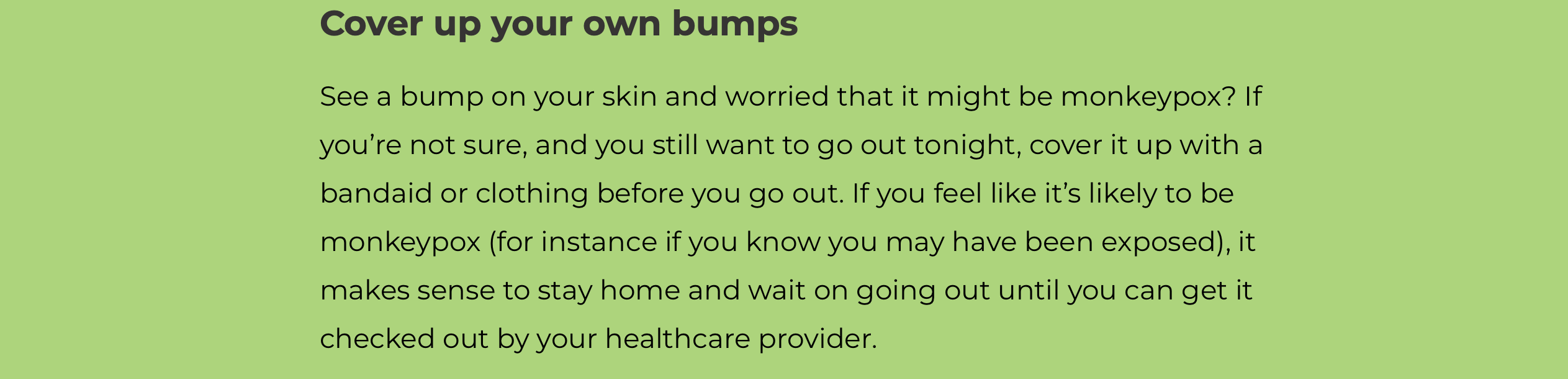 You can’t make this stuff up. The S.F. Aids Foundation advises people that, if you’re “not sure” whether the bumps are monkeypox, just hide them and go out anyway. Sure sounds like a recipe for a super-spreader to me.