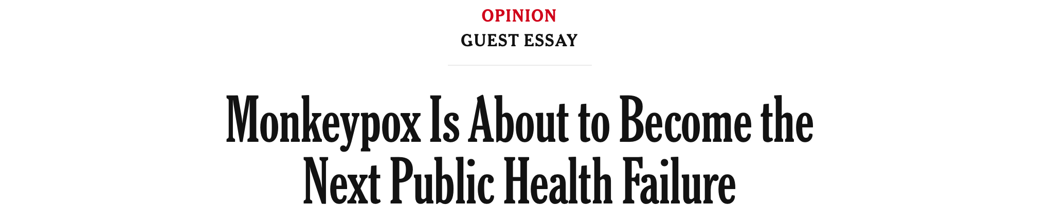 🔥 Okay, that’s the news and science. Now let’s talk politics. Many conservative commenters are darkly predicting that New York and San Fransisco are warmups for, or harbingers of a new pandemic lockdown over monkeypox, to facilitate broad mail-in voting rules designed to affect the midterm elections. I do NOT agree with this, I think it is fear-candy, and I’ll explain why.