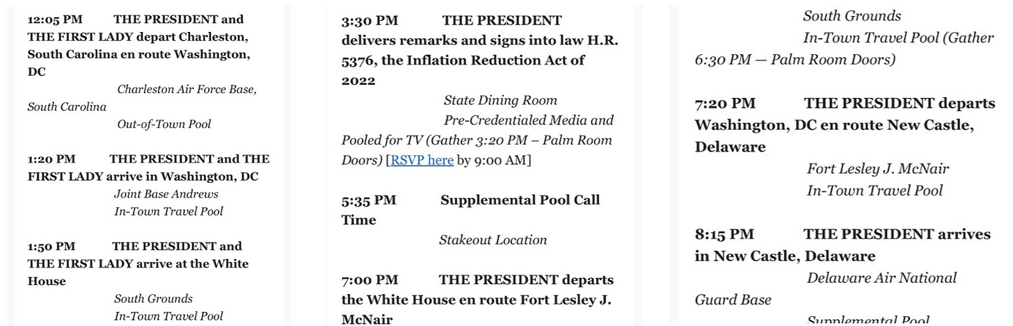 🔥 It’s been a busy week for the Bidens. Joe Biden got back from vacation with Hunter and the grandkids this weekend. He’d taken the week off after taking the previous three weeks off for his mild covid infection, and yesterday, after arriving from vacation number one and signing his cynically-renamed Build Back Better 2.0 bill into law, he jetted off for another week of vacation number two.