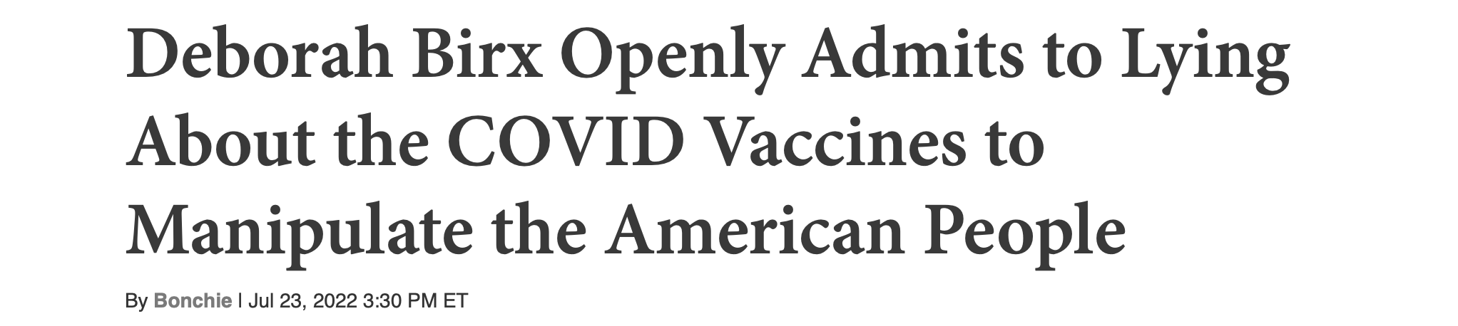 That admission — the she lied to us just to get us to go along — plus more examples, like where Birx bragged about tricking the public about vaccine efficacy to get more jabs in arms (she said she “always knew” the shots wouldn’t stop infections), generated fun headlines like this one last month from RedState: