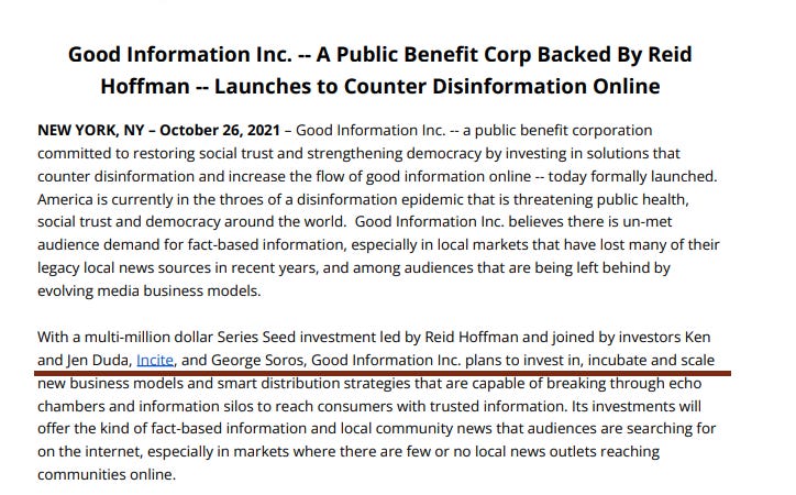 InfluenceWatch didn’t list Good Information, Inc., which runs the Good Info Project, but it did mention this interesting little nugget: