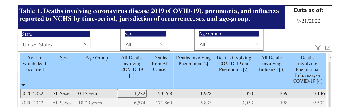 Here are some errors. Fauci laments the loss of 1400 kids, but the CDC tracker as of 9/21/22 says 1282, but more to point: it is unclear which deaths are due to COVID and which are from COVID. Fauci also doesn’t distinguish the risks to elementary kids which are profoundly different than teenagers. He doesn’t distinguish risks to health kids vs. those with co-morbidities. Finally, he has no evidence that school closure lowered this number! The best studies shows that closure did nearly nothing to alter it.