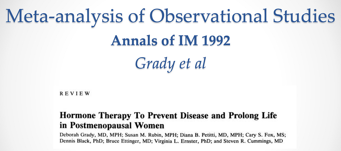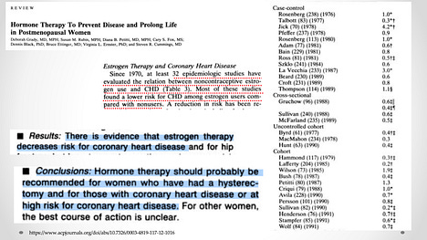 In 1992, the prestigious journal, the Annals of Internal Medicine, published a meta-analysis (a combination study of studies) of hormonal therapy to prevent heart disease and prolong life in post-menopausal women.