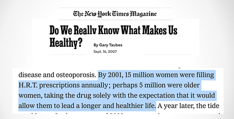 The exact number isn’t important; what’s important is that lots of women took preventive HRT—for years—in the absence of a proper randomized trial.