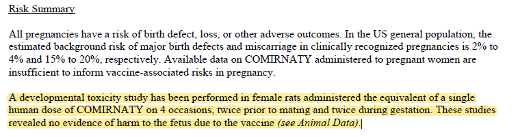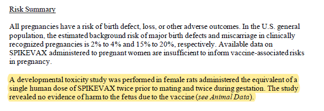 It has long been the case that Moderna and Pfizer are less convinced than the CDC/FDA about the pregnant rat studies: