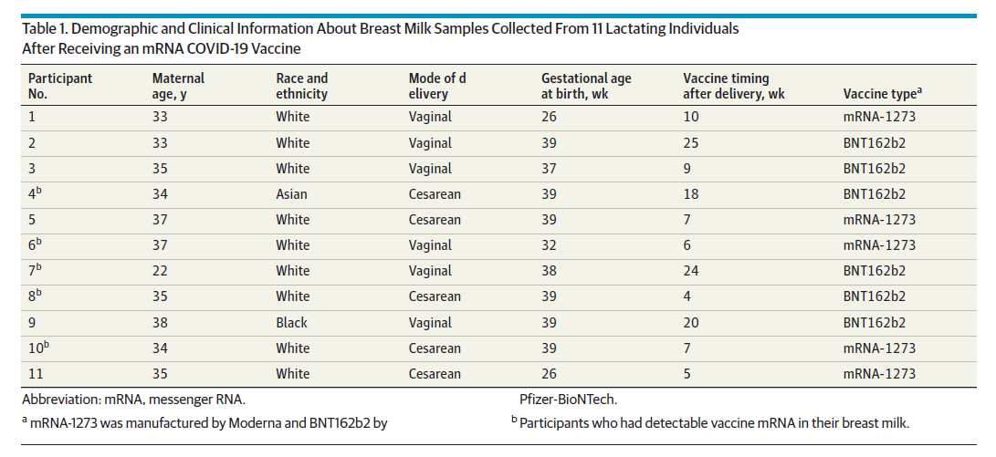 Source: COVID-19 Vaccine mRNA now found in breastmilk