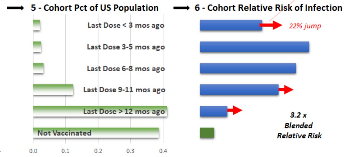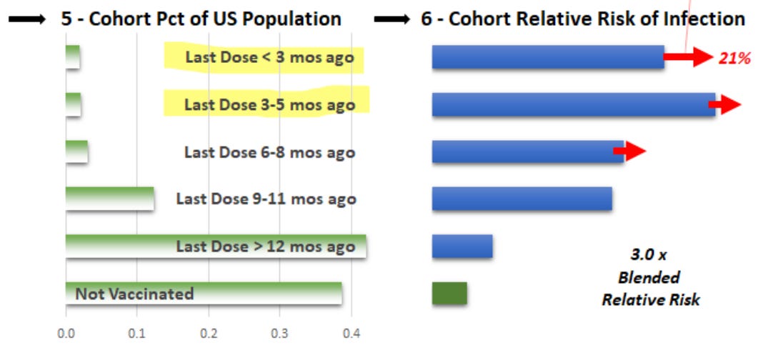 But now, negative efficacy appears to be showing up INSIDE three months. The group that Ethical Skeptic calculated was second-most-likely to get infected are people who got their last shot within 90 days.