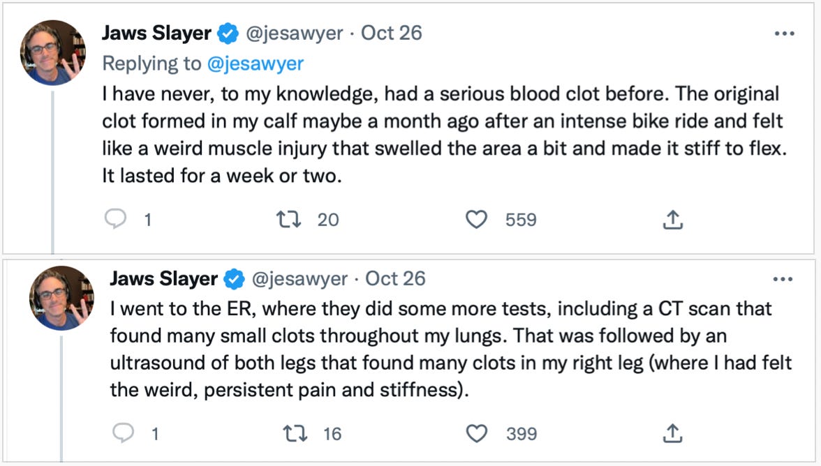 Fortunately, Mr. Sawyer says he expects to make a complete recovery with the help of blood thinners.