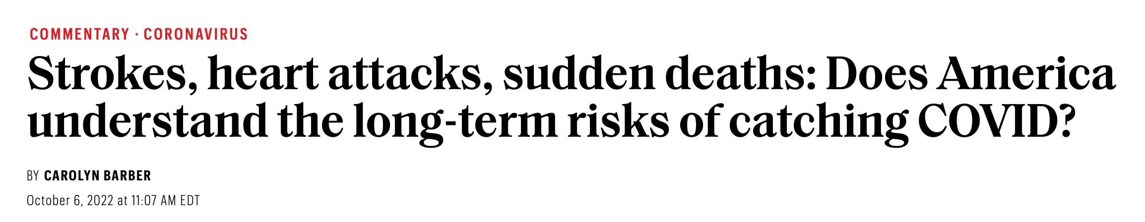 🔥 In early October, it looks like they tried to shift the blame for excess deaths onto the amorphous horrors of “Long Covid.” Here’s a nice representative headline, from Fortune, dated October 8th: