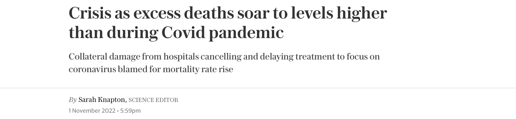 Other developed countries — countries lacking our CDC — are reporting critical levels of excess death. I’m not exaggerating. From the Telegraph UK yesterday: