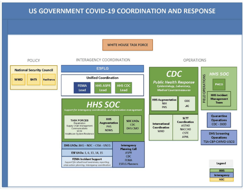 In other words, in accordance with a bunch of pandemic preparedness laws and directives, the HHS is the Lead Federal Agency in charge of pandemic response.