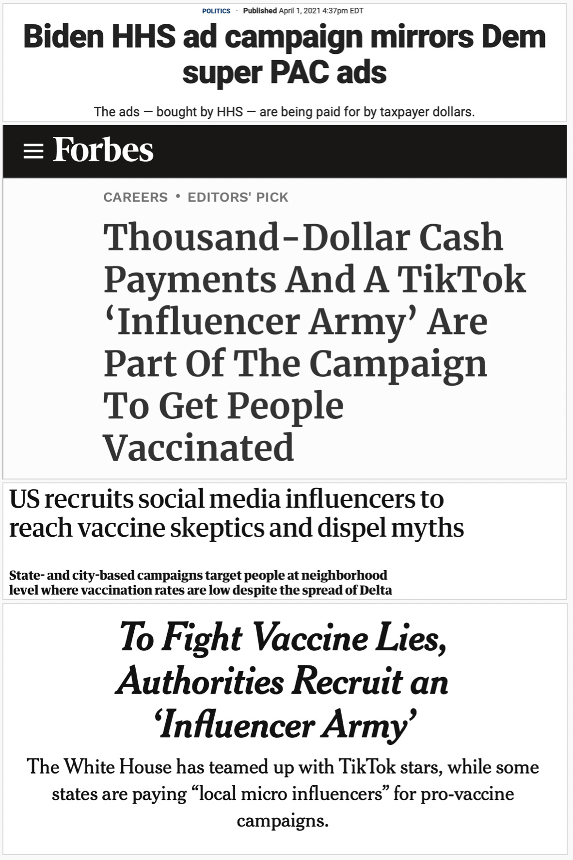 🔥 This all kind of reminds me of how HHS bought the cooperation of corporate media outfits and news influencers by spending billions on vaccine ad placement last year.