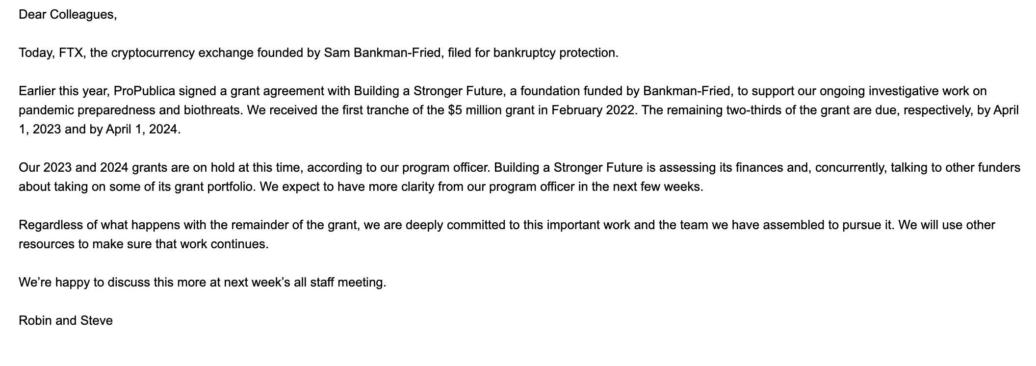 First of all, I’ll bet many of you were happily unaware that “news grants” were even a thing. Grants are completely different, and lots better, than bribes. OBVIOUSLY Sam Bankman-Fried couldn’t just write checks directly from FTX’s bank account to news companies.