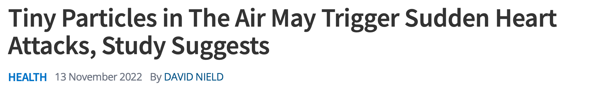 The researchers compared the locations and dates of out-of-hospital cardiac events with known air pollution levels in Shanghai, applied some fancy math, and — ta-da! — claimed to find a correlation between pollution and heart attacks. (Of course, as we’ve been told literally one trillion times over the last two years, correlation does not equal causation.)