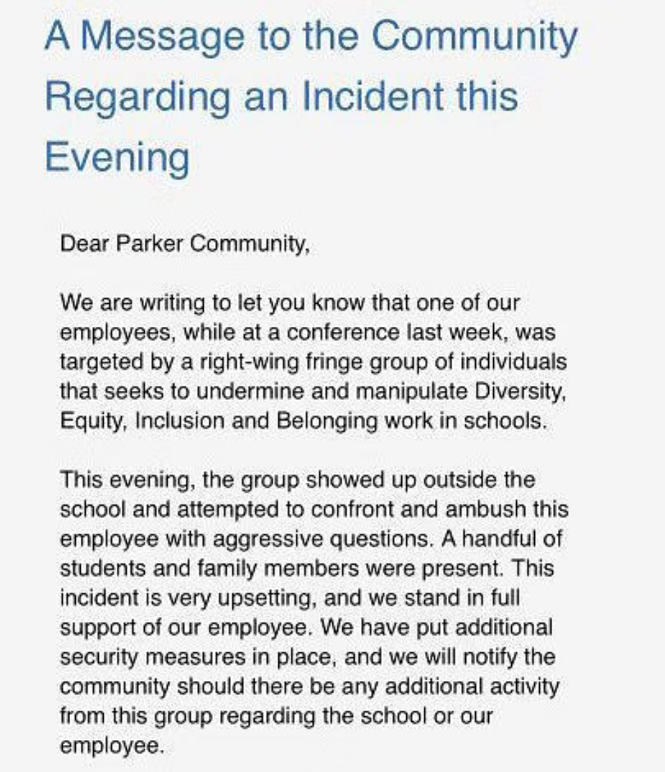 The Francis W. Parker school raced to delete its Twitter account, [heaven forbit, by why? We are all about transparency, aren’t we??] but sent parents a statement supporting Dean Bruno and his degenerate lesson plans and props.