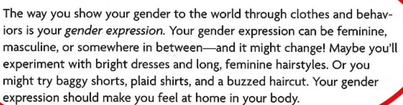 The “book,” intended for girls aged 3-12 — and I am not making this up — advises young ladies that, “If you haven’t gone through puberty yet, the doctor might offer medicine to delay your body’s changes, giving you more time to think about your gender identity.” It also offers these young girls tips on how to signal their sexual preferences “to the world:”