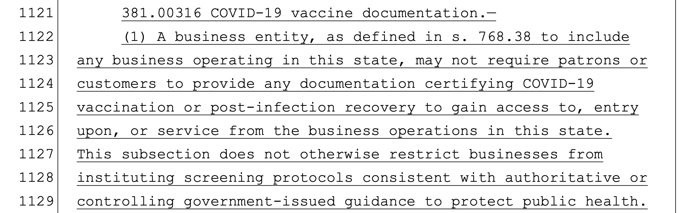 Some conservatives understand this, but still argue that DeSantis should have removed the quarantine law when he had the chance, in the same bill, SB2006. After all, they can just as easily remove stuff as add it. Removals in bills are shown using strikethrough, like this: