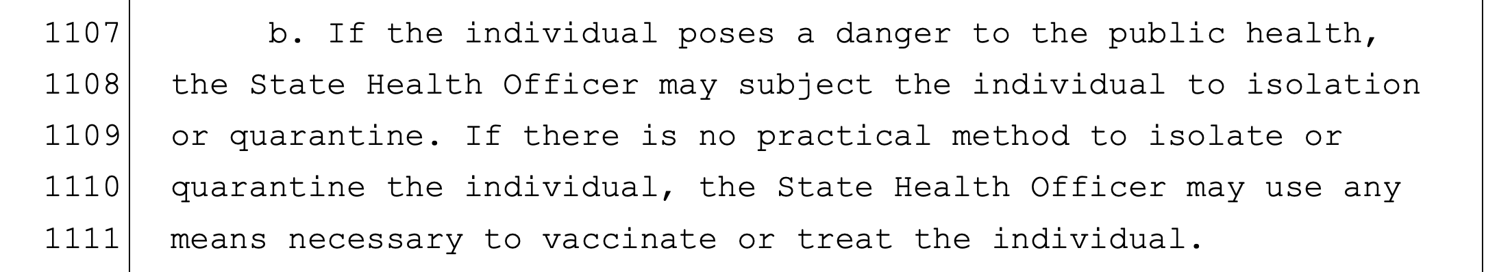Every good lie has an element of truth. In this case, the truth is the 42-page blockbuster SB2006 did contain the involuntary quarantine language. Here it is: