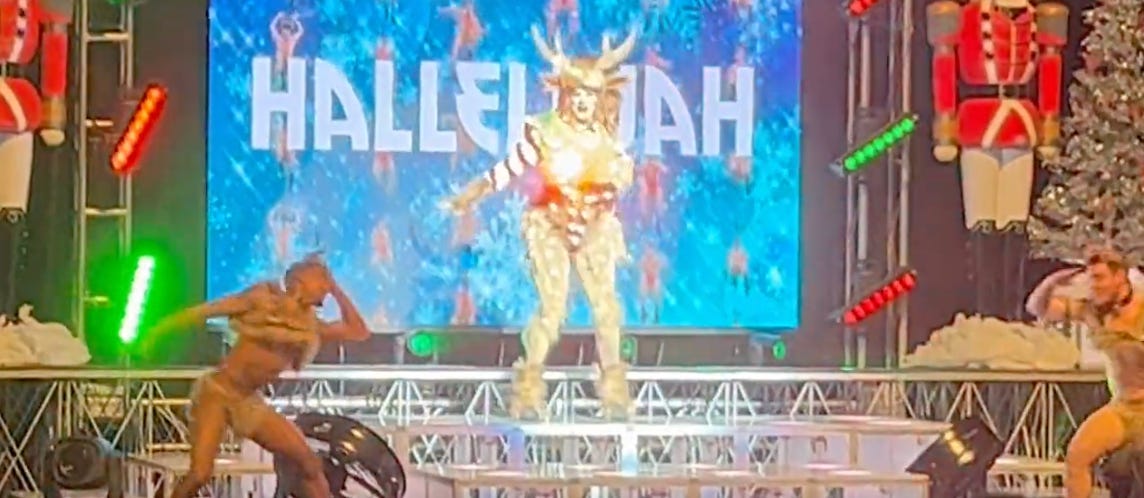 🔥 The Florida Department of Business and Professional Regulation just announced they are investigating Monday’s “family friendly Drag Queen Christmas” show. That was fast! I found some images from the show but, well, it was super hard to find any that I could include on this (mostly) family-friendly blog, not even blurred. But here you go.