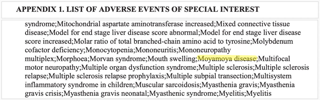 Purely coincidentally, Pfizer’s court-ordered disclosures of its confidential “Adverse Events of Special Interest” included Moyamoya disease in the list.