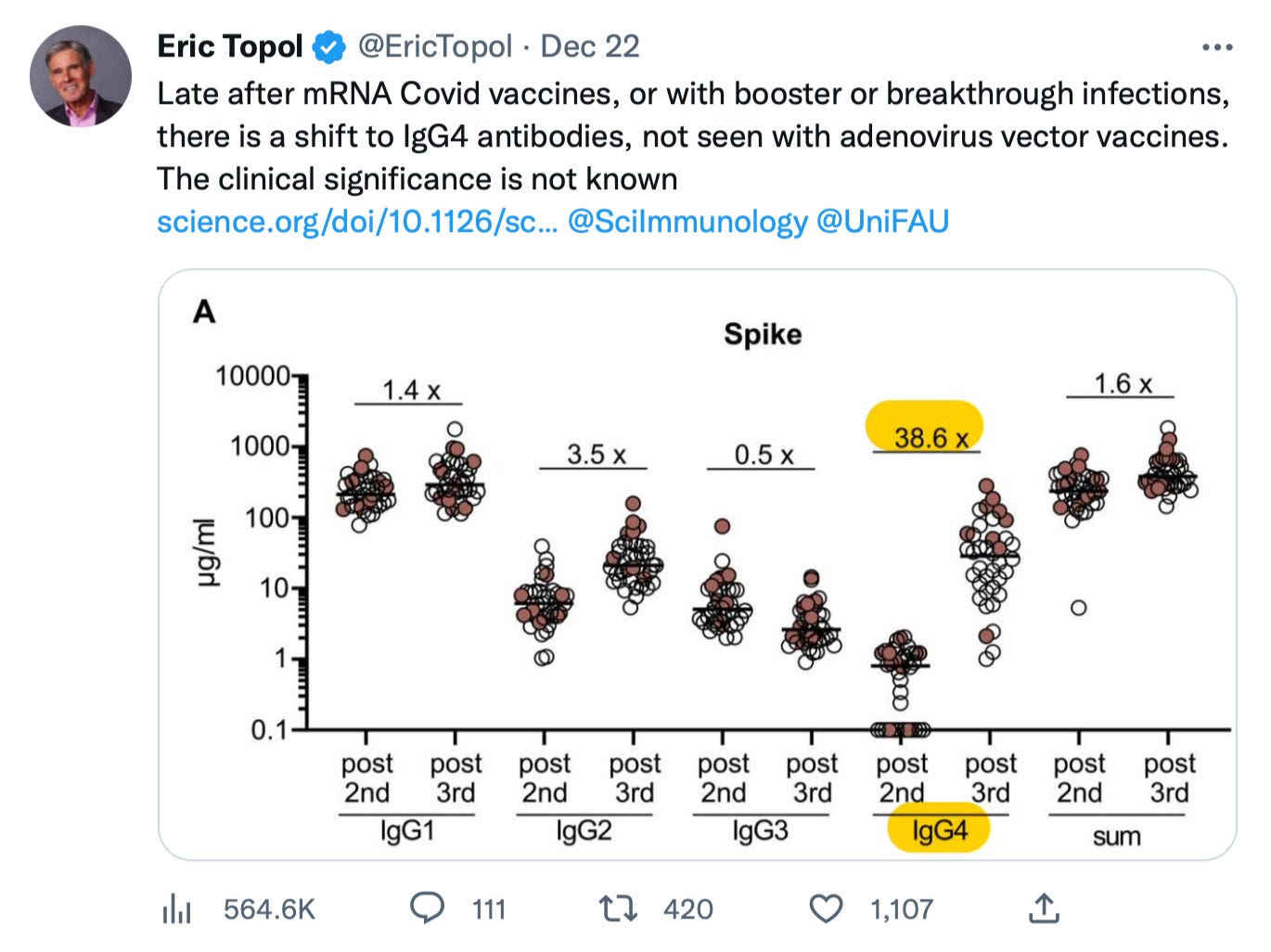 💉 The study we reviewed on Monday about the IgG4 antibody shift is spreading widely. In just two days, most of the usual covid commenters have written about the story, and even rabidly pro-jab folks have noticed: