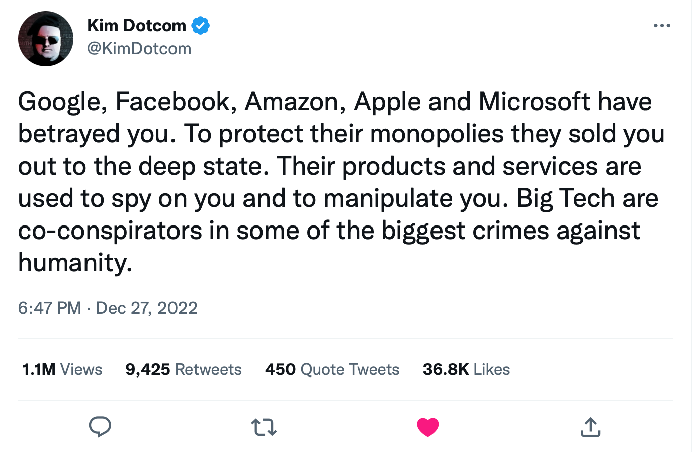 Maybe, back when they were buying up social media influencers, they should’ve bought Kim Dotcom. I have to imagine that they didn’t plan this part of the narrative.
