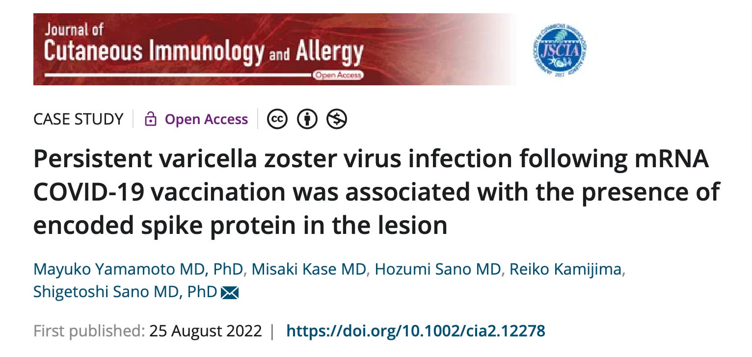 The Japanese are catching onto how the game works now, and are looking around for unattached spike proteins. Here’s a Japanese case study from August, published in the Journal of Cutaneous Immunology and Allergy, finding unattached spike proteins swimming around in skin lesions: