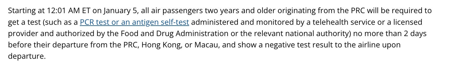 Just this week, the United States announced that we would be requiring a PCR or antigen-based test from all travelers from China. This policy is demonstrably incorrect. It is wasteful, discriminatory, harmful, and offers no upside to the American people. Even the CDC director acknowledges how foolish it is. She admits it can’t stop the spread of variants.