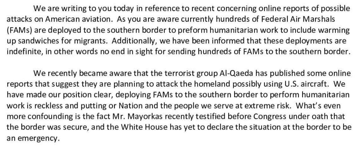 🔥 Finally, Judicial Watch ran a story yesterday headlined, “Al Qaeda Plans Plane Attacks Using ‘New Techniques and Tactics’ as Air Marshals Keep Getting Sent to Mexican Border.”
