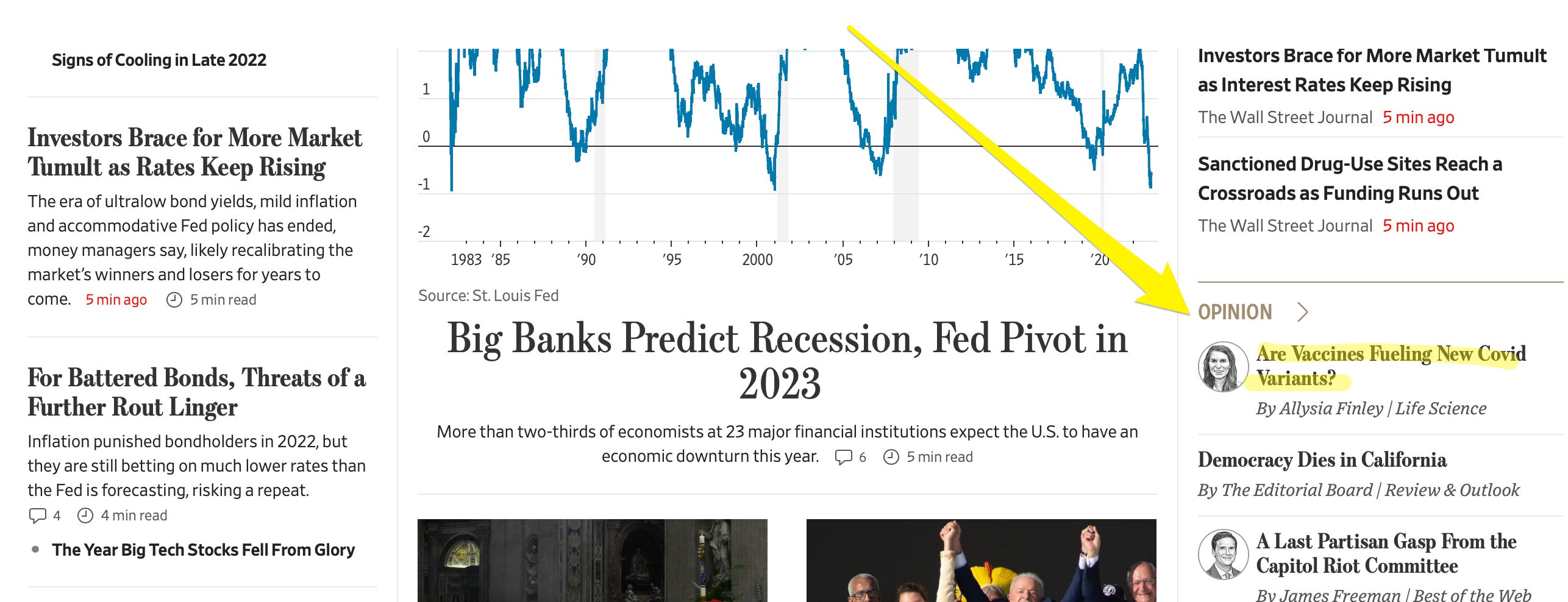 💉 The top of the Wall Street Journal’s opinion section this morning finally asks the obvious question: “Are Vaccines Fueling New Covid Variants?”