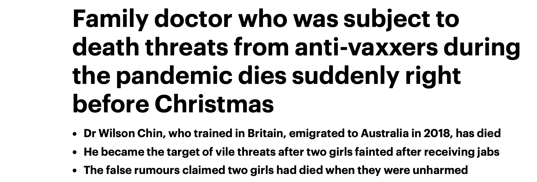 Here’s how the Daily Mail Australia wrote its unintentionally ironic December 28th headline about Dr. Chin’s passing: