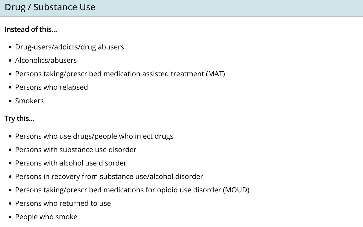 “Person who relapsed” versus “person who returned to use.” Why? Because we wouldn’t want to put any judgement on addiction? Where does their idiocy end?