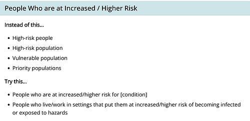 Then of course, there are all those tried and true public health phrases that aren’t supposed to be used anymore.