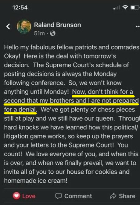 Even the Brunsons seem prepared for the Supremes to deny their petition. Yesterday they posted a mostly encouraging note: