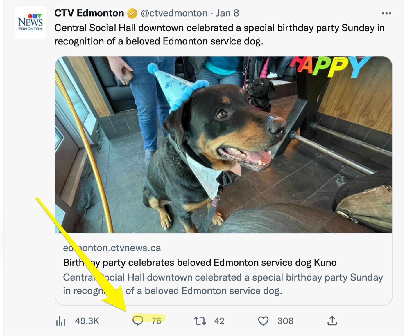 Out of an abundance of caution, CTV Edmonton also locked down its own social media. Up to mid-day on the 8th, all their news tweets allowed comments: