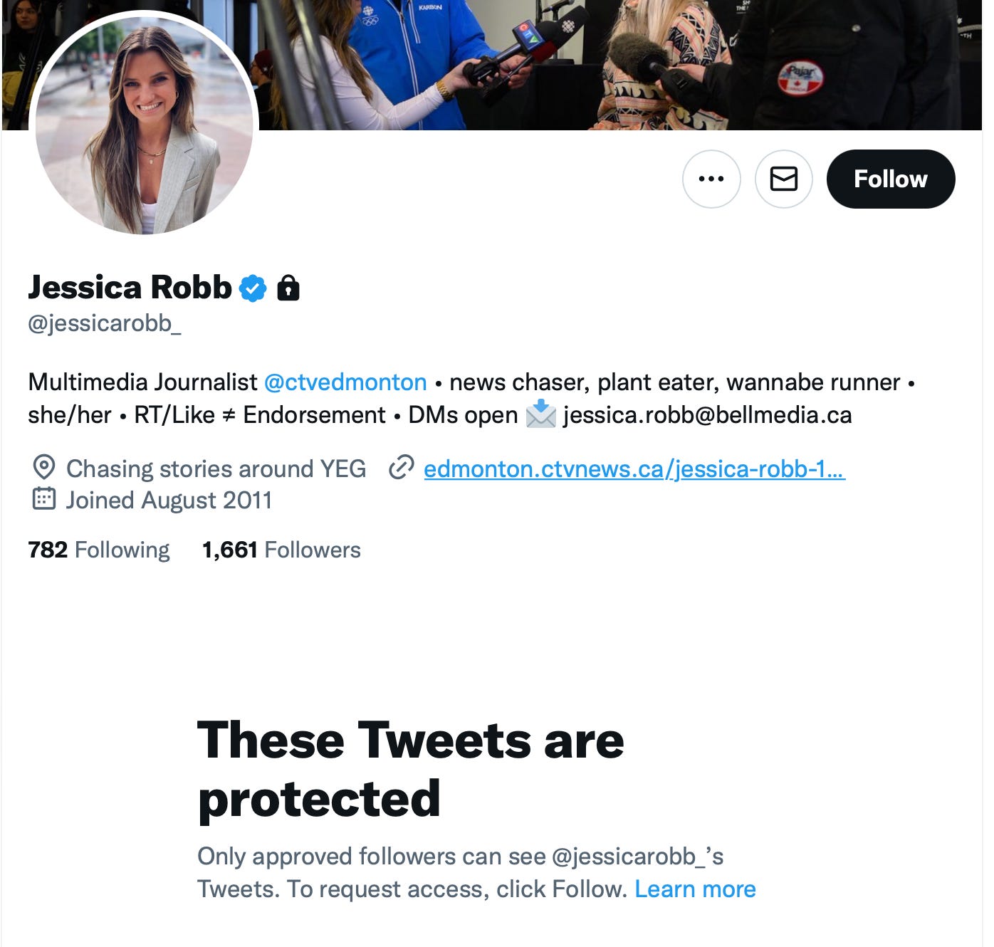 💉 Many folks were concerned for the young CTV reporter from yesterday’s post, who had what appeared to be a potentially serious, sudden and unexpected medical incident live on-air this weekend. So to allay your concerns, I dug up some more information for you. Her name is Jessica Robb. Reports suggest she is recovering at home. Probably. Maybe.