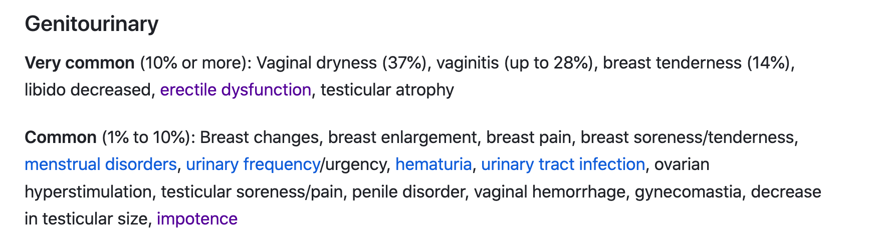 Or is allowing Government and big Pharma to once again collude at the expense of our children all in the name of profits the child abuse? To me and many of you reading, it is obvious which is which. Lupron (Leuprolide) is a type of hormone therapy for prostate cancer. It works by lowering the amount of testosterone in a person’s body, which helps slow the growth of cancer cells. The list of side effects is long and not insignificant. Additionally, Leuprolide is given in extremely high doses to pedophiles to kill their sex drive completely. Some of the side effects listed: Many of these genitourinary changes are permanent when given to children.