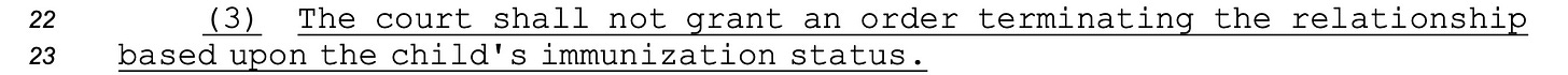 Even better, the law would preclude judges from terminating a parent’s rights because the parent disagrees about vaccinating their child: