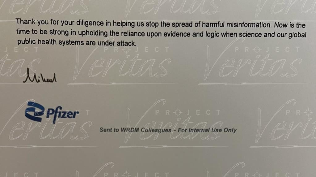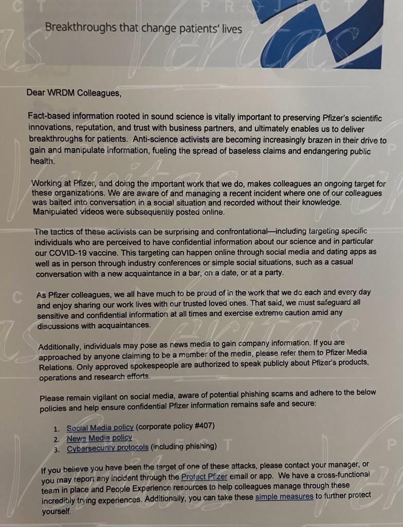 Is it just me, or does this dystopian memo sound just like something excreted from the bowels of the CDC or any of the other agencies these days? They all sound alike. It’s all just official bureaucratese without any entrepreneurial flair at all, or even any sign that Pfizer has any thoughts separate from the government.