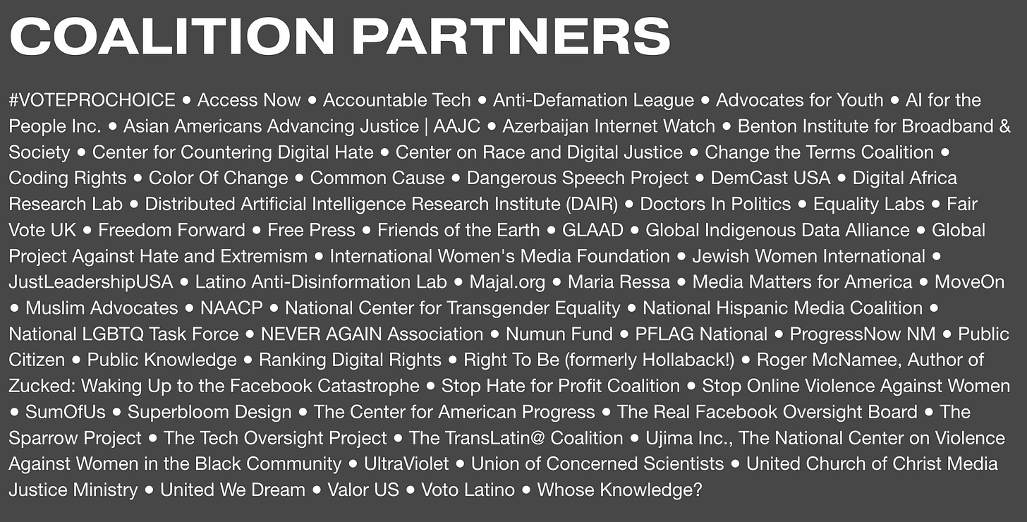 Now, the CCDH doesn’t have enough political power or money to pull this one off by themselves. So, back to the astroturf basics. They formed a coalition of “groups.” Then used that coalition to pressure corporations.