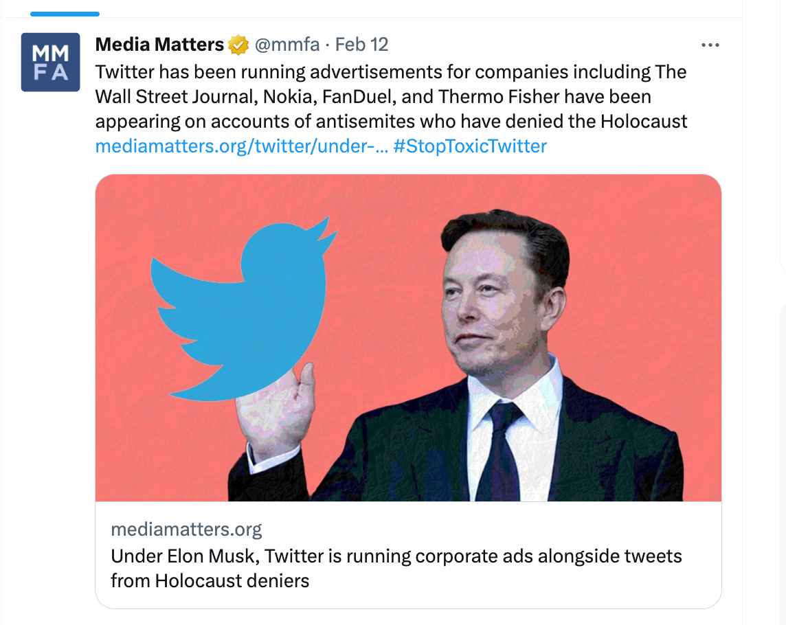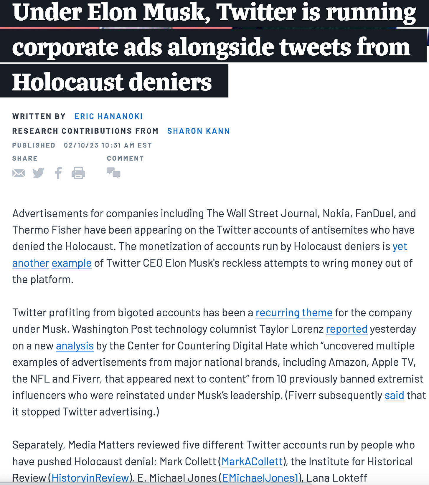 Remember, this is NOT about criticing the vaccine, Russia, a laptop, Trump, January 6, or being an anti-semite. This is open warfare on Elon Musk. So why not bring out the anti-semite ploy? It has certainly worked well for CCDH in the past!
